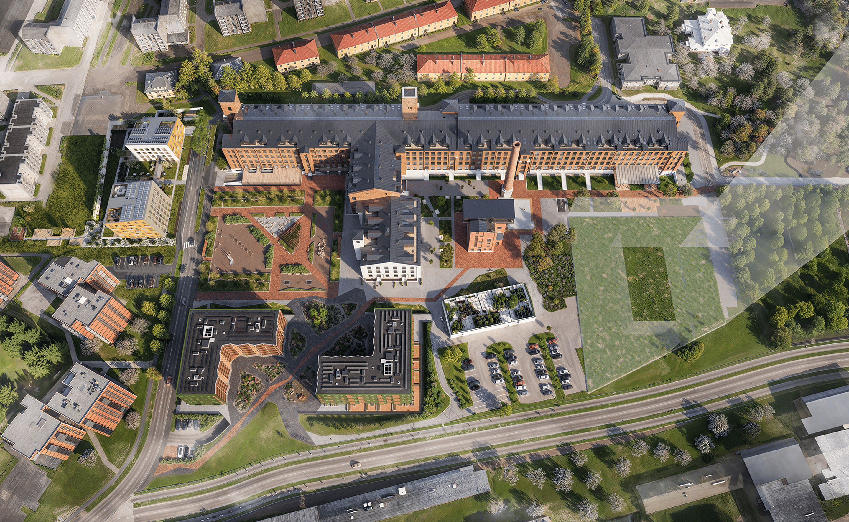 Between Manufaktuuri 12 and the iconic Factory building lies a large park, perfect for a leisurely walk or a picnic in one of the relaxation areas. Or if you’d like, you can engage in more physical activities, such as climbing or water and sand sports.